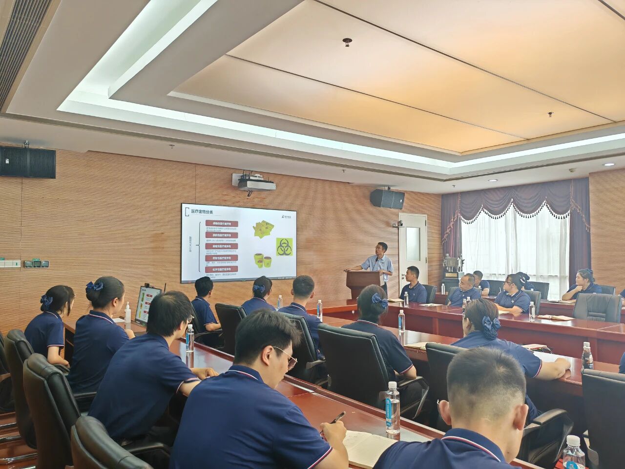 隨後,肖亮以《院感防範——建立行爲屏障》爲題,從環境清潔消毒、手衛生的執行、個人防護用品、醫療廢物管理方面對院感知識進行講解,強化參訓人員院感防控意識。在《石材簡介及翻新晶化》課程中,肖亮聚焦醫院地面石材的保養與翻新技術,針對不同材質的地面詳細講解其特性、保養方式及翻新流程。最後,陽光融和醫院物業服務中心運送主管張穎從中央運送含義、崗位分布及職責、運送類型、運送五大模式、院感知識及安全相關知識對醫院中央運送服務展開分享。